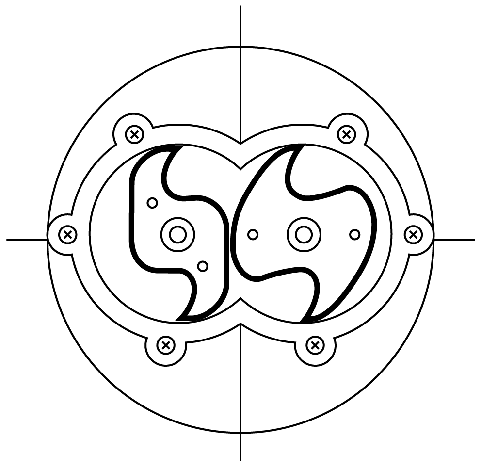 A claw pump consists of two rotors, which turn in opposite directions in a compressor housing without contact with very tight clearances. They are synchronized via a precision gear. As the claw moves over the suction connection and the axial suction channel inlet the gas is sucked into the compression/pumping chamber.